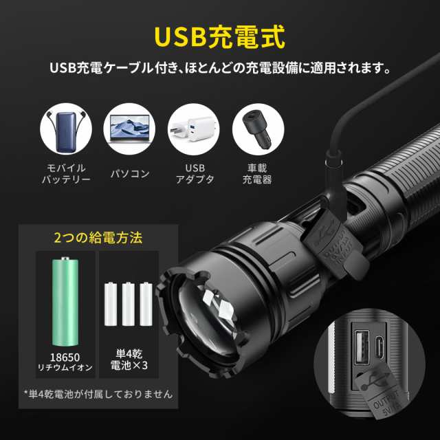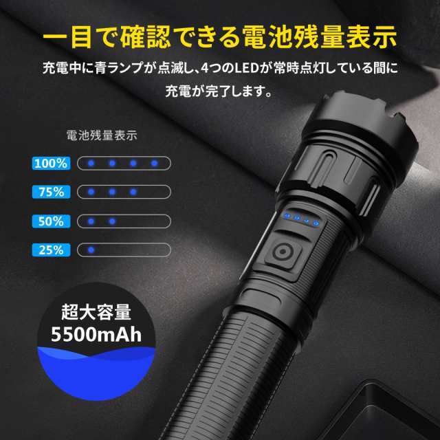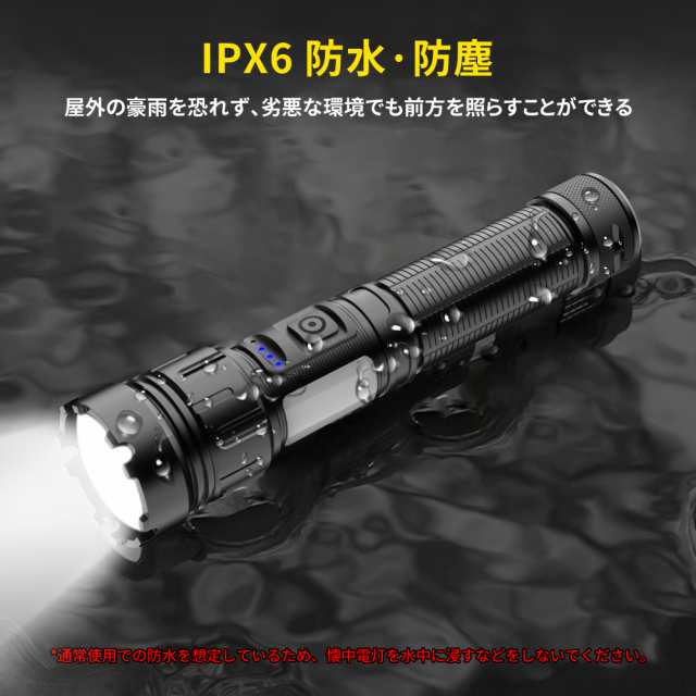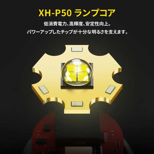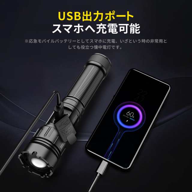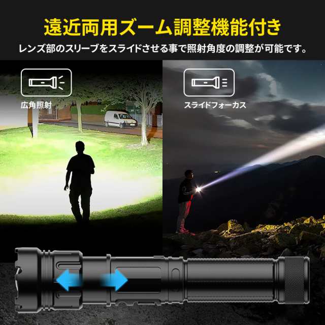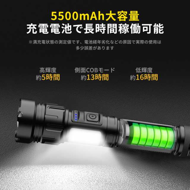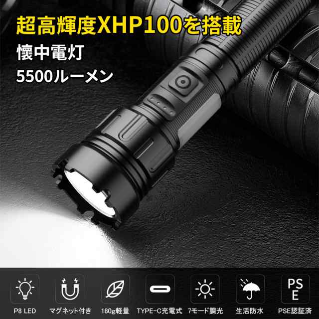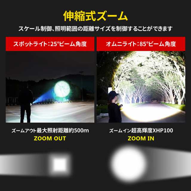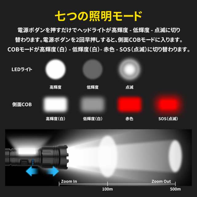 懐中電灯 XHP100 高輝度 充電式 電池式 COB作業灯付き ledライト 防水 Type-C充電式 電池交換可能 ハンディライト 白&赤色灯 7モード ズーム調整 小型 明るい 耐衝撃 防災 自転車 登山 作業用 停電 地震 誕生日 プレゼント