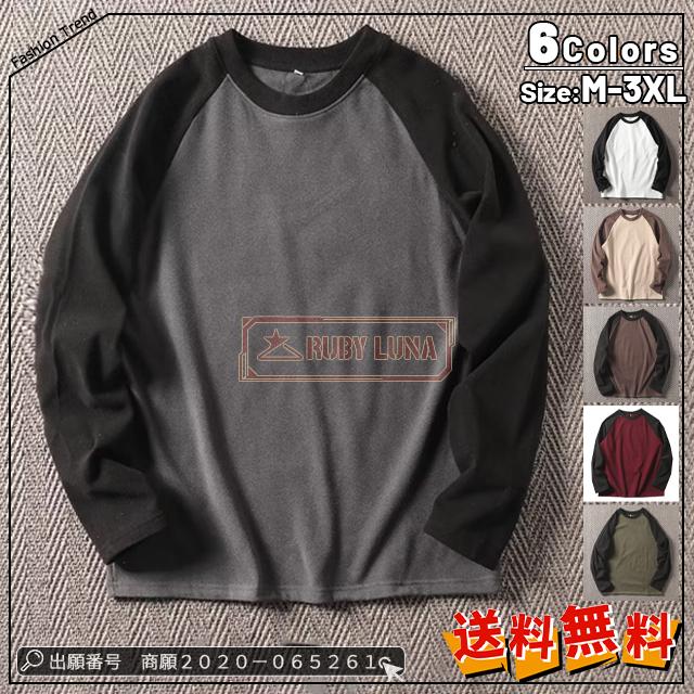 最安挑戦 冬新作 送料無料 新作 トップス メンズ Tシャツ ゆったり 秋冬 ラグランスリーブ 長袖Tシャツ 無地 クルーネック プルオーバーパーカー カットソー 両面ベルベット ソフト 暖かい