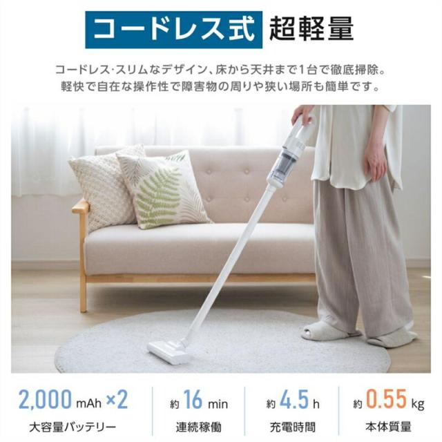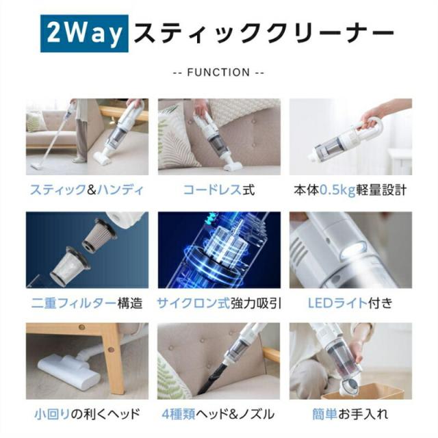 掃除機 コードレス 充電式 連続稼働30分 小型 軽量 コンパクト ハンディ掃除機 スティッククリーナー スティック型 一人暮らし ハンディクリーナー