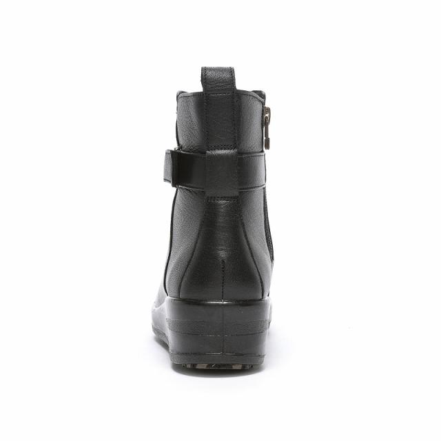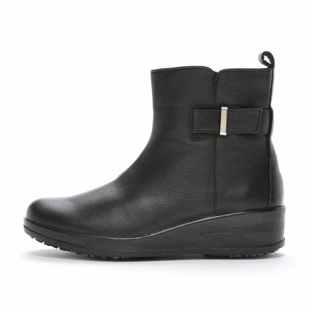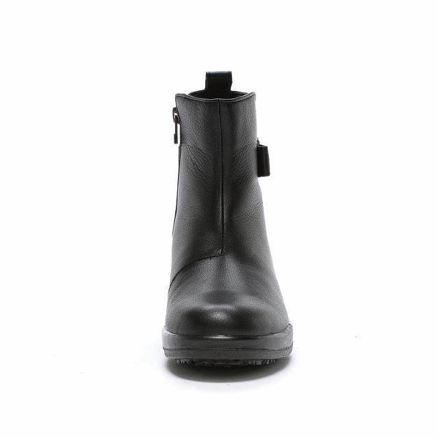 日本製ならではの丁寧できめ細やかな作りが魅力の「ムーンスター スポルス」の雪寒地向け本革コンフォートブーツです。表革は足にやさしいガーメントレザーを使用し、履くほどに足に柔らかくフィットします。撥水加工を施しています。ソールには一般的なガラス繊維に加え、その1/10以下のサイズの超微細なウールガラス繊維を配合した防滑ラバー「3Dナノスペラン(R)」を採用しています。ラバー本来の柔らかさ・弾力性は維持したまま、ガラス繊維の総数を従来の約4倍の本数に増加させて防滑効果を約15%向上させています。スペラン部が路面を三次元的にとらえるスポンジ積層構造です。路面が凍る朝の通勤や旅行にもおすすめです。サイドベルトがアクセントのショートブーツです。内側ファスナー付きで脱ぎ履きもしやすいです。ヒールの高さは4.5cm、重量は23.0cmで片足約310gです。【足なり設計】足の特性に合わせて足裏にフィットするため、負担がかかりにくい設計です。【スペラン(R)】ソールにミクロのガラス繊維を垂直に配置することで、優れた防滑性をもったソールです。氷上、濡れた大理石などで特に威力を発揮します。