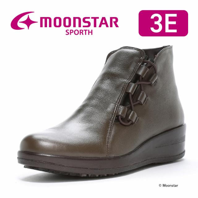 送料無料 ムーンスター スポルス レディース スニーカー ウィンターシューズ ショートブーツ 日本製 革靴 SP7763NSR チョコ 滑りにくい 防滑 ナノスペラン リペア対応 ブーツ ダークブラウン スノーブーツ