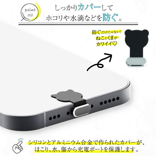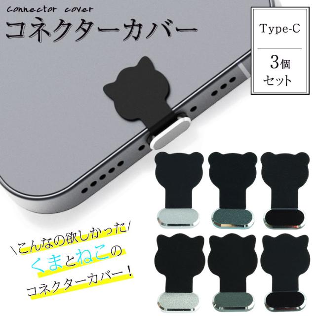 コネクタカバー 3個セット Type-C キャップ 猫 熊 保護キャップ 防塵 防水 防傷 クマ コネクタ シリコン ネコ アニマル 動物 かわいい