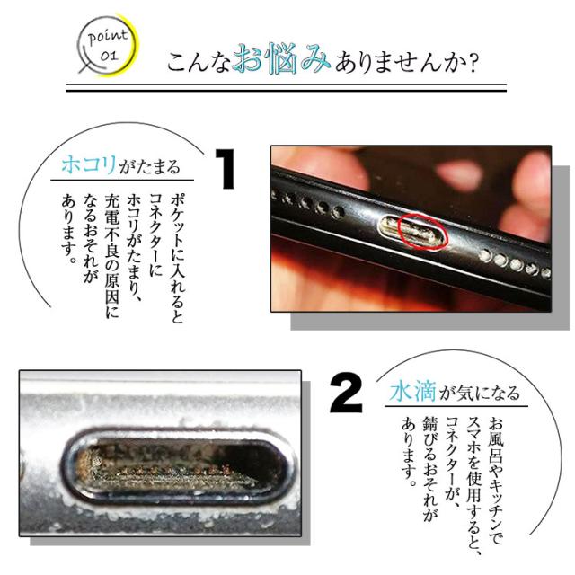 シリコンとアルミニウム合金素材。ほこりや水滴から充電ポートをしっかりガードします。