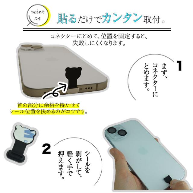 愛らしいネコとクマの形をしたコネクタカバーが、スマホをおしゃれに保護します。