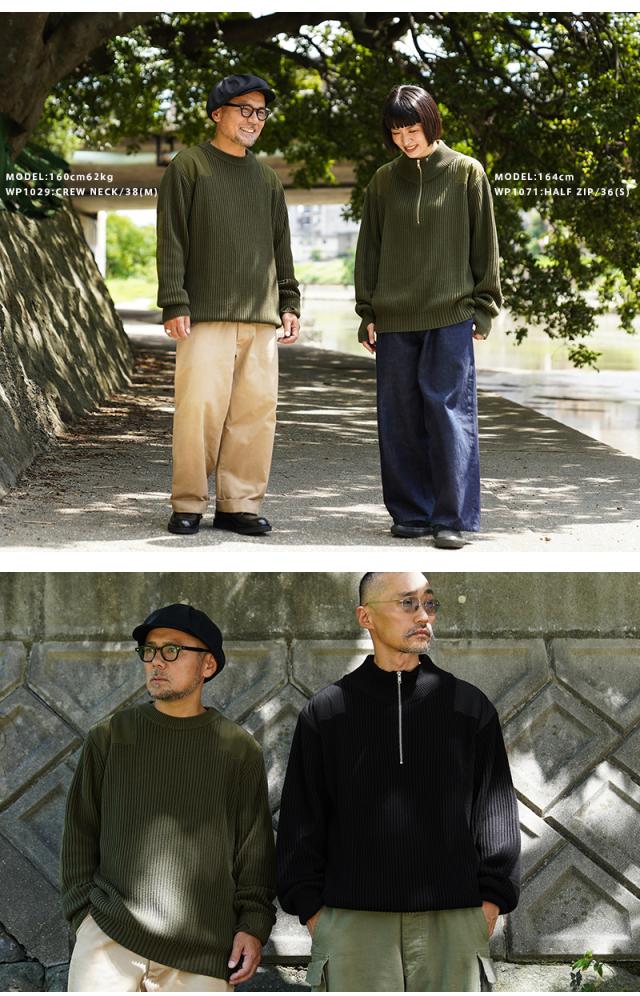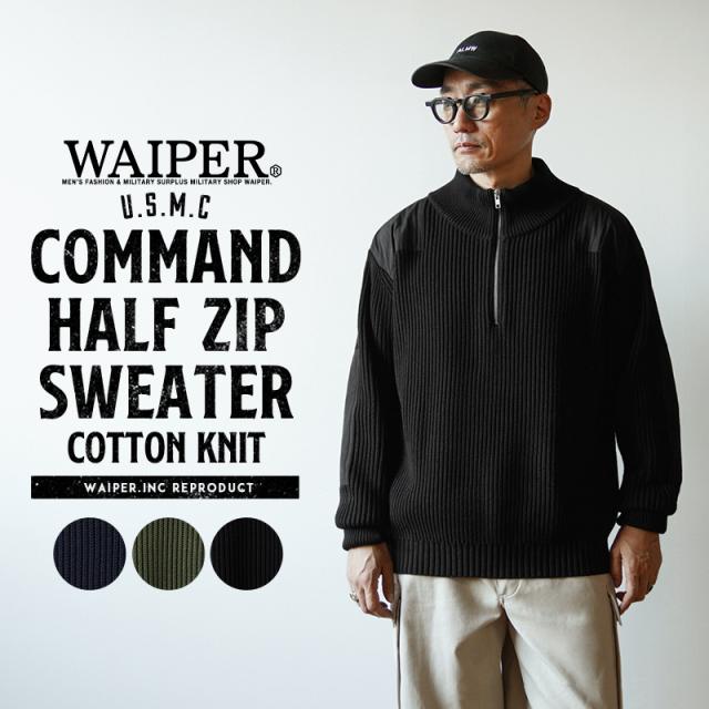 WAIPER.inc 米軍 U.S.M.C コットンニット コマンドハーフジップセーター【WP1071】【Cx】【T】|メンズ トップス 大きいサイズ ミリタリー ハイネック 立ち襟 ゴルフ 綿 大人 カジュアル ブランド おしゃれ