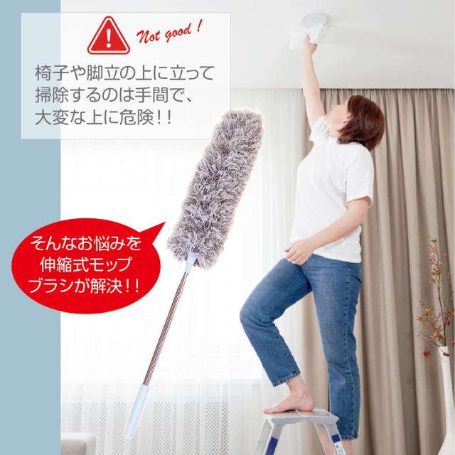 伸縮式 モップブラシ 高所 クモの巣取り ほこり 埃 吹き抜け モップ 掃除 ロング エアコン 曲がる ロングモップ 隙間 長さ調整 伸縮 長い 伸びる 天井 換気扇 蜘蛛の巣 クモの巣 ブラシ 大掃除 シンプル 調節 台所 リビング 屋内 室内 窓 外壁 mop-brush