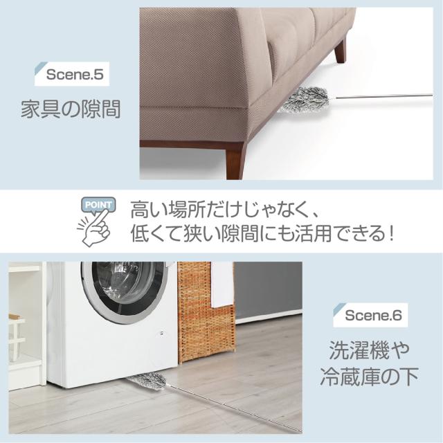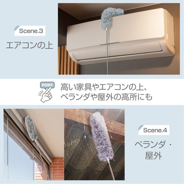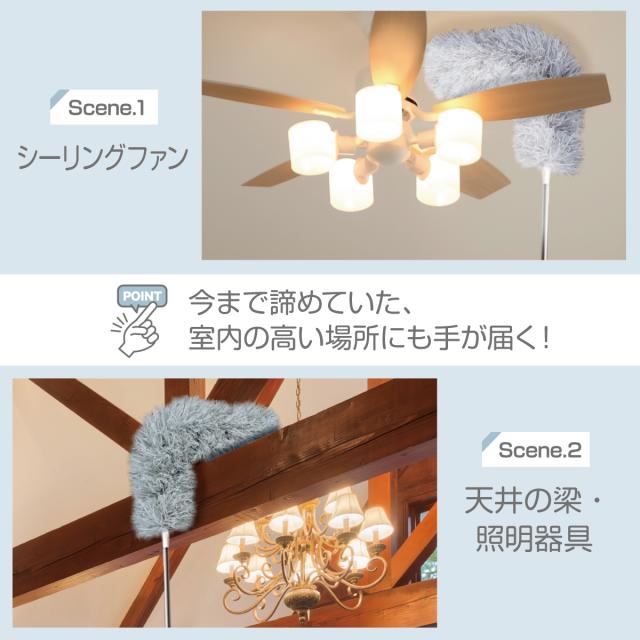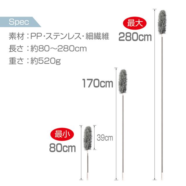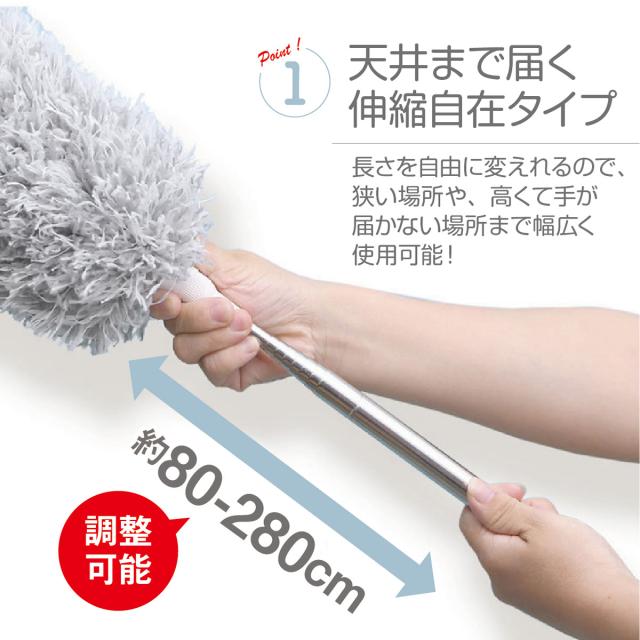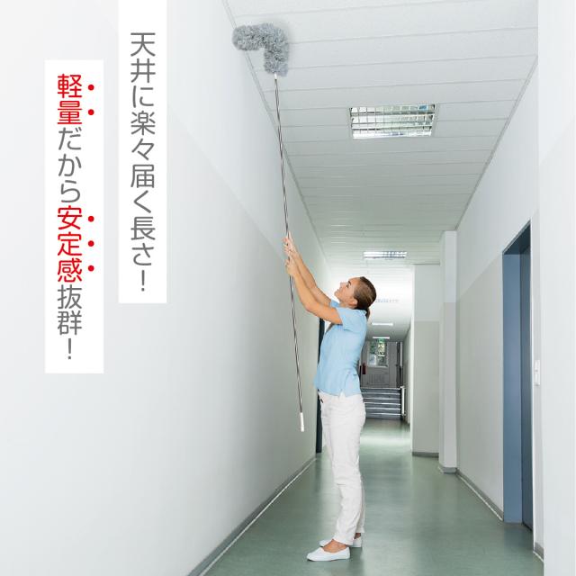 【天井まで届く伸縮自在タイプ】長さを自由に変えれるので、狭い場所や、高くて手が届かない場所まで幅広く使用可能!
