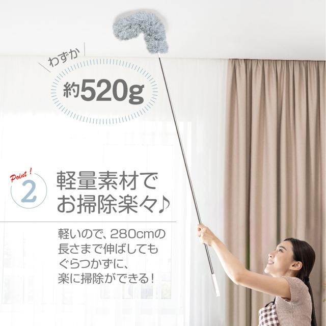 【軽量素材でお掃除楽々♪】約520gなので、280cmの長さまで伸ばしてもぐらつかずに、楽に掃除ができる!