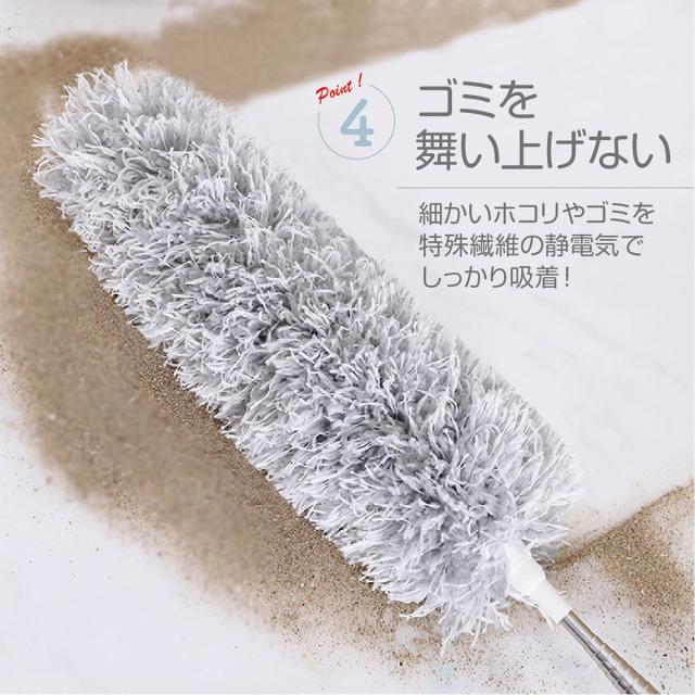 【ゴミを舞い上げない】細かいホコリやゴミを特殊繊維の静電気でしっかり吸着!