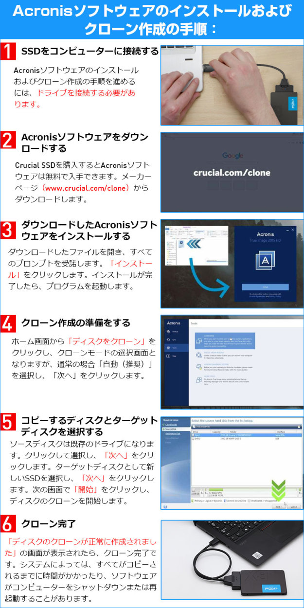 ※開始前に、SSDの容量が古いハードディスクドライブの容量より大きいことを確認してください。そうしないと、データの複製(クローン)に失敗してしまいます。