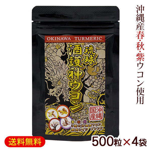 琉球 酒護神ウコン 500粒×4袋 /沖縄産 春 秋 紫 混合ウコン サプリメント うっちん沖縄【M便】
