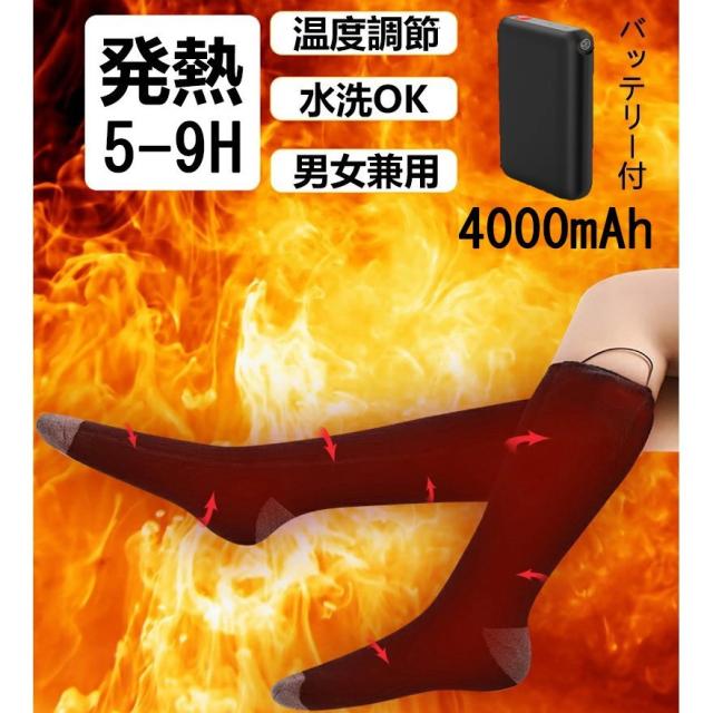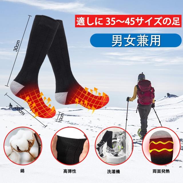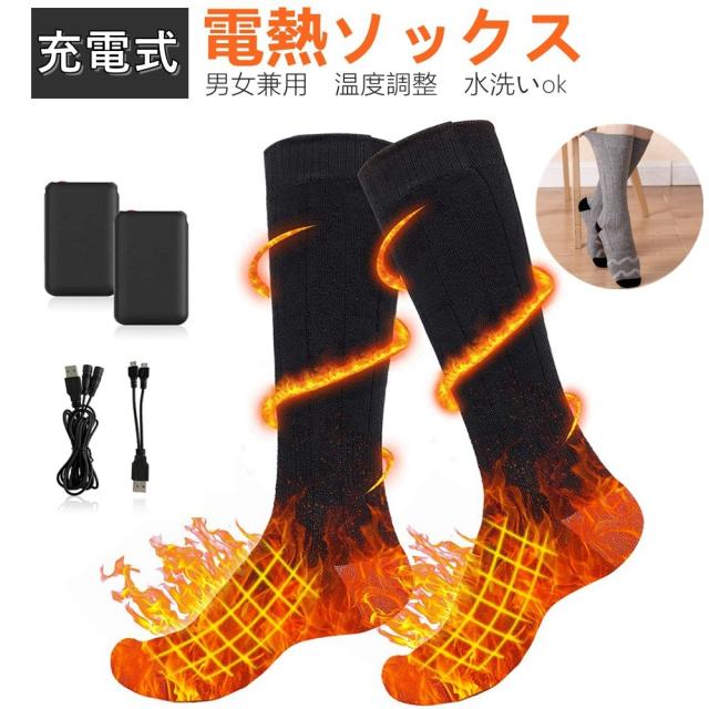 電熱ソックス 電気靴下 両面加熱ソックス USBの充電電池の加熱ソックス ヒーター靴下 ヒーターソックス 防寒ソックス 男女兼用 冬用