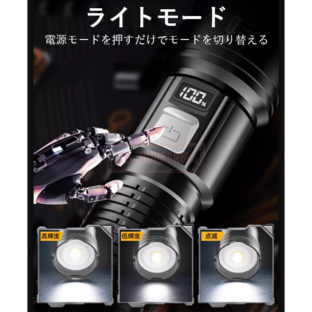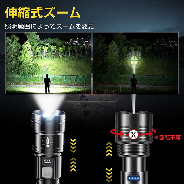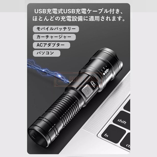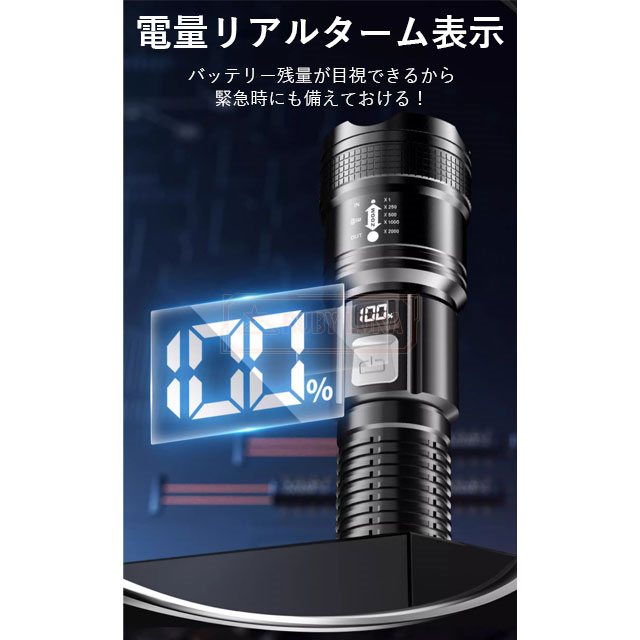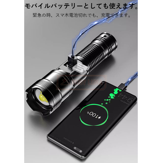最安挑戦 冬新作 送料無料 新作 懐中電灯 LEDライト ズーム機能 ハンディライト USB充電式 タクティカルライト 防水 防災 小型 明るい 3モード調光 キャンプ アウトドア 大容量 広範囲 防災用 停電 軍用 自転車 登山 LED残量表示