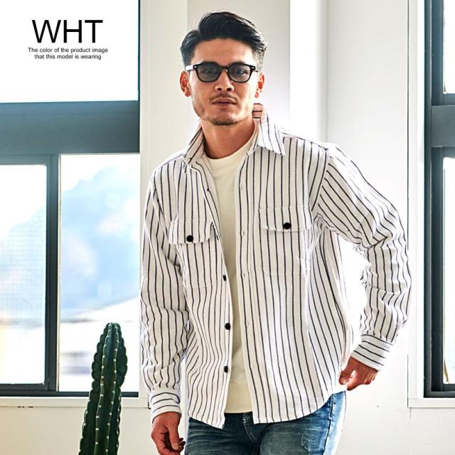 ネルシャツ メンズ ブランド おしゃれ 長袖 厚手 CPOジャケット カジュアルシャツ フランネル ストライプ柄 ヘビーウェイト 暖かい 綿100% コットン ホワイト ブラック 白 黒 M L XL 大人 アメカジ 秋 冬 即日発送 [648-00]