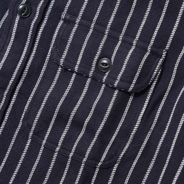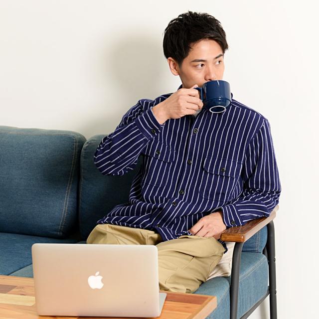 - コットン好きで、ヘビーコットンのネルシャツを探してました。フランネルシャツはチェック柄が多いですけど、これはストライブ柄。これから寒くなる季節に重用できそうです。