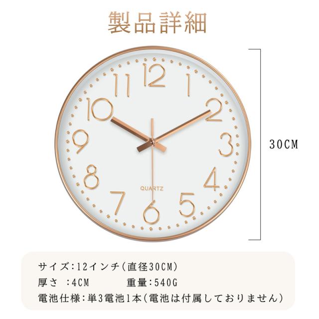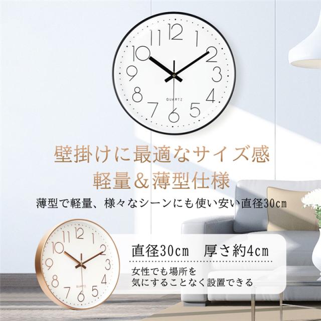 壁掛け時計 掛け時計 静音 非電波時計 北欧 おしゃれ 大型 見やすい 連続秒針 ウォールクロック 薄型 軽量 音がしない 3D大