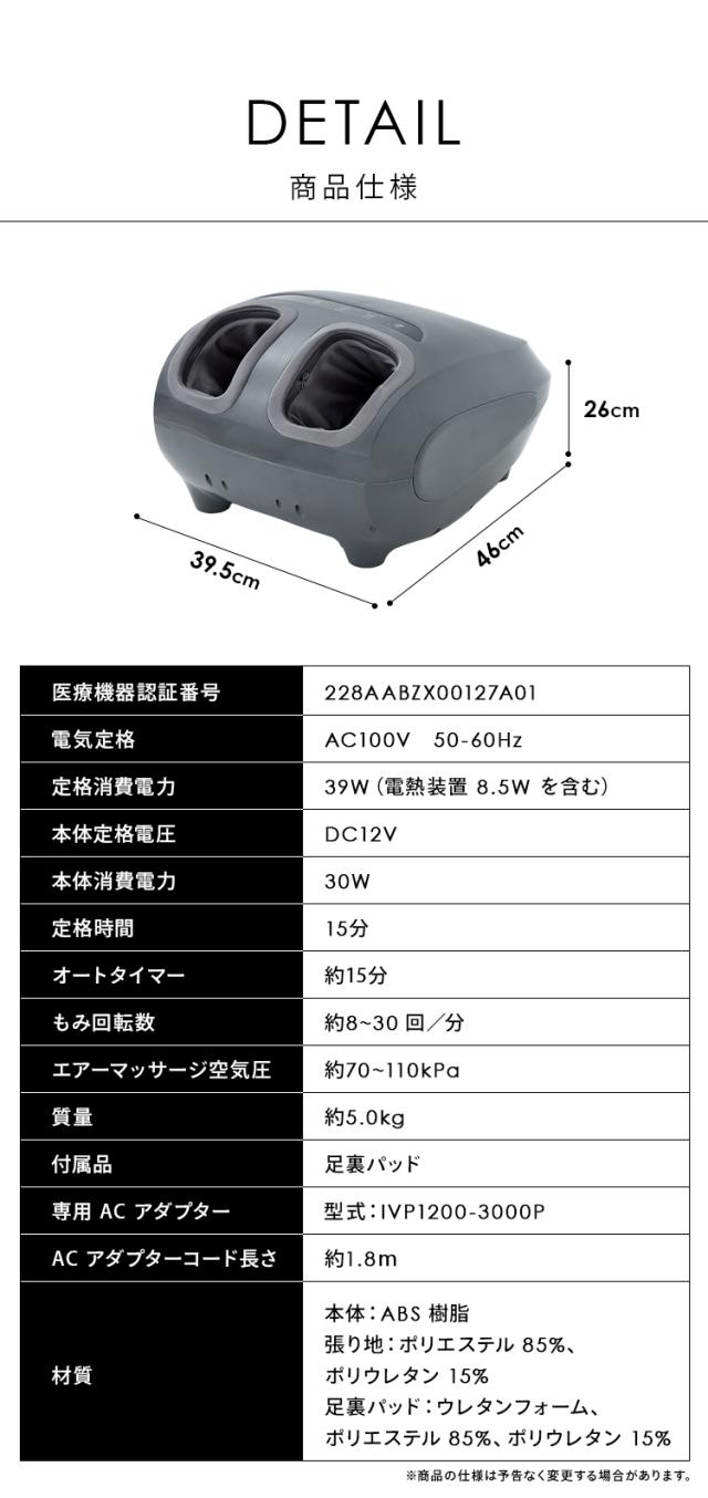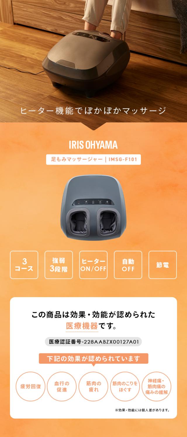 足もみマッサージャー グレー IMSG-F101 マッサージ器 フットマッサージャー 揉み+指圧 ヒーター搭載 省エネ 足裏 疲労 むくみ 立ち仕事 医療機器 送料無料