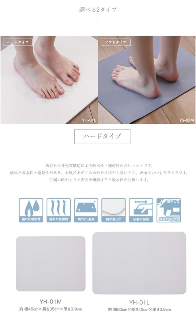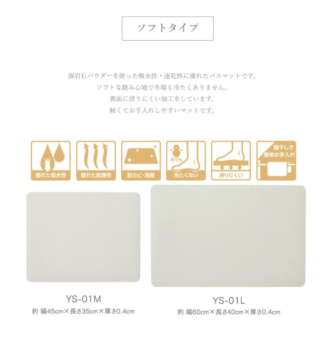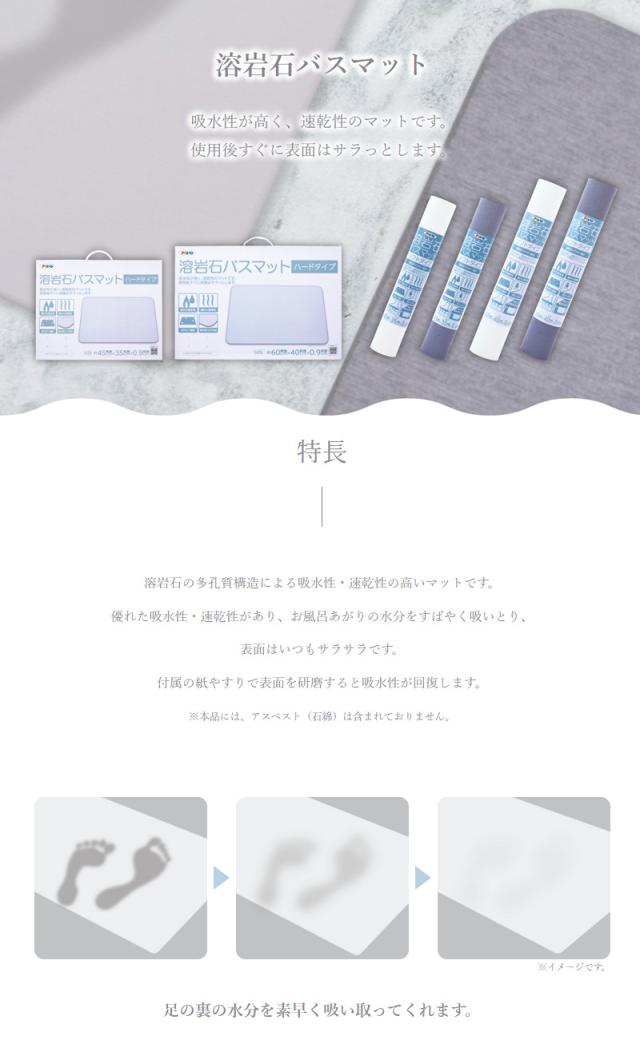アサヒペン 溶岩石バスマット ソフトタイプ YS-02L グレー 60×40×0.4cm 火山岩 吸水性 乾燥性 防カビ 防臭 お風呂マット 便利