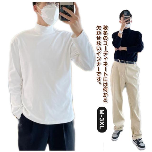 長袖 2点セット メンズ モックネック インナー 2点セット トップス カットソー ロンt tシャツ ロングtシャツ 春 秋 ゆったり ロングスリーブ 長袖tシャツ 薄手 秋服 男性 冬 秋物 無地 シンプル 大きいサイズ 黒 白 韓国風