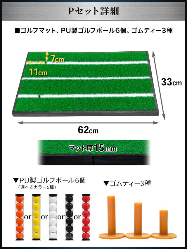 ゴルフマット、PU製ゴルフボール6個、ゴムティー3種