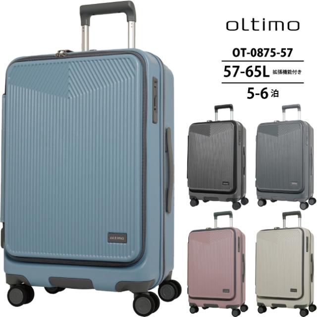 oltimo スーツケース キャリーケース キャリーバッグ メンズ レディース Mサイズ 中型 57L 65L 5日 6日 ストッパー フロントオープン BOXタイプ 拡張 静音 日乃本 hinomoto キャスター ブラック ブルー グレー ピンク アイボリー オルティモ OT-0875-57 女子旅 lojel 旅行