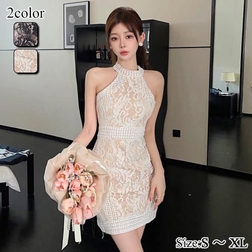 【グラシア】 キャバ ドレス キャバドレス ワンピース ミニドレス アメリカンスリーブ カジュアル デコルテ メリハリ 可愛い 華奢 華やか レース ブラック ホワイト S M L