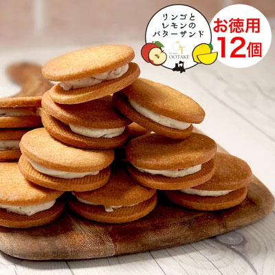 林檎とレモンのバターサンド 12個 青森 バターサンド ガレット クッキーサンド リンゴ レモン ギフト 誕生日 お祝い 大容量 お徳用 蒲屋忠兵衛商店