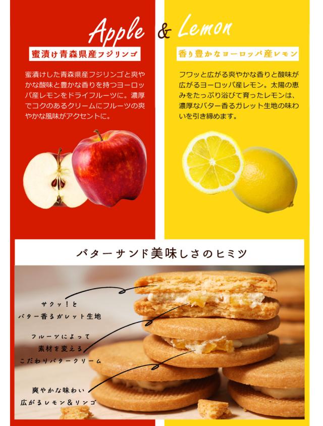 | 内容量 | 12個(リンゴのバターサンド6個、レモンのバターサンド6個) |