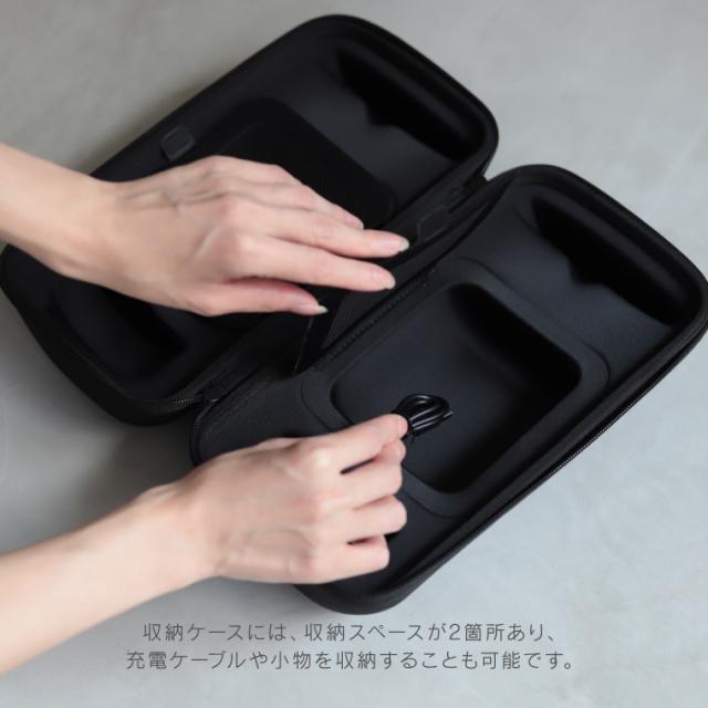 ケースには収納スペースもあり、充電ケーブルなどの小物をまとめて持ち運ぶことができます。