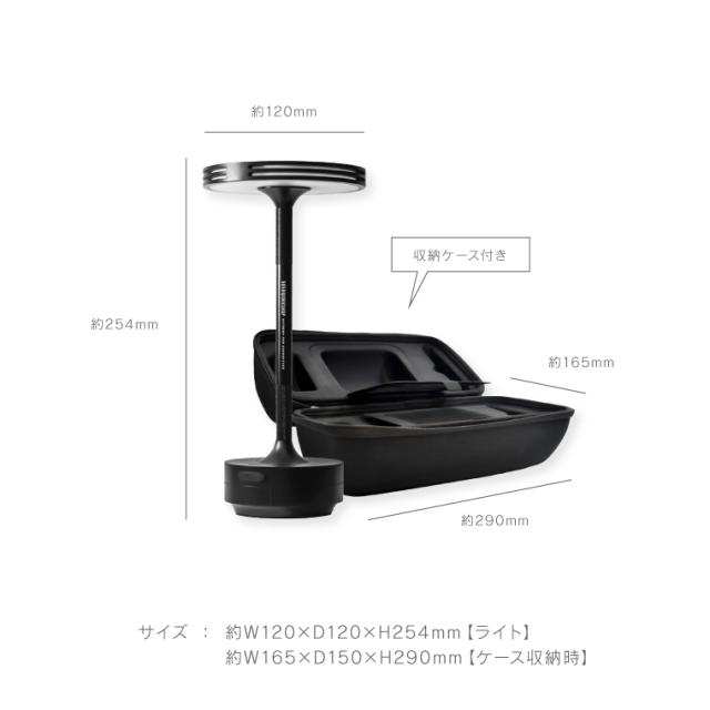 | サイズ | ■ライト:約H254×W120×D120mm 重量 約535g ■ケース:約H290×W165×D150mm 重量 約387g |