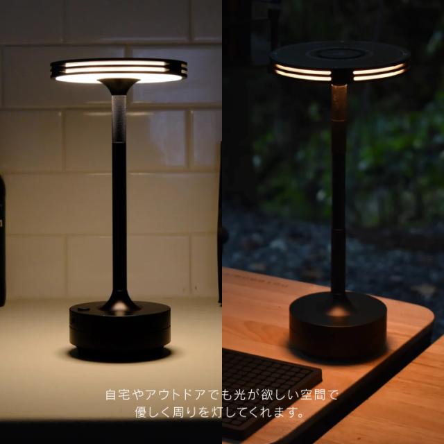 ベッドサイドのライト、キャンプのテーブルの周りなど、自宅やアウトドアでも光が欲しい空間で優しく周りを灯してくれます。