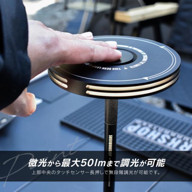 5050 WORKSHOPのTABLE LAMPは、インドアからアウトドアまでシームレスに活躍する卓上ライトです。