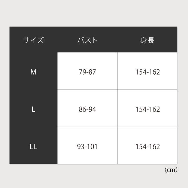■サイズ:身長154-162、M/バスト79-87、L/バスト86-94、LL/バスト93-101cm