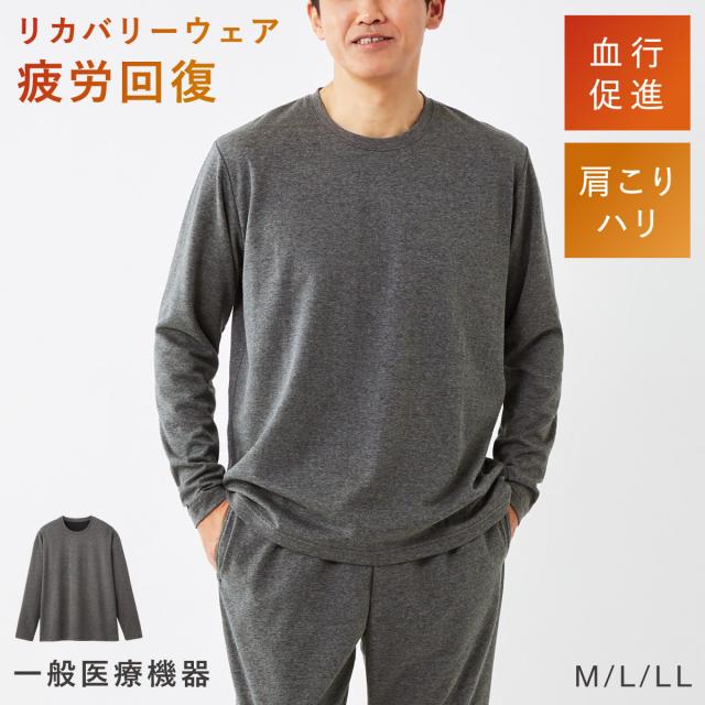 リカバリーパジャマ 疲労回復 リカバリー ウェア メンズ【一般医療機器】長袖シャツ 肩こり 肩コリ 血行促進 着るだけ快眠 安眠 寝間着 リカバリーケア メディカル 男性用 杢グレー ルームウェア 疲れ 回復 睡眠改善