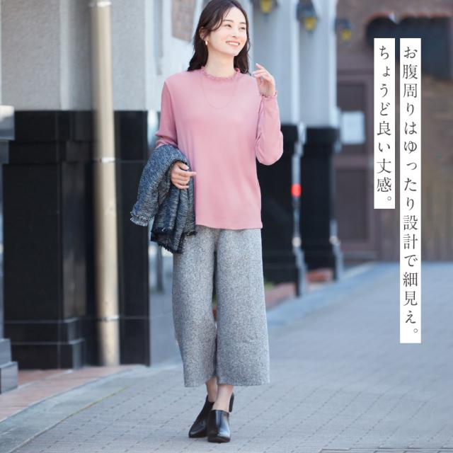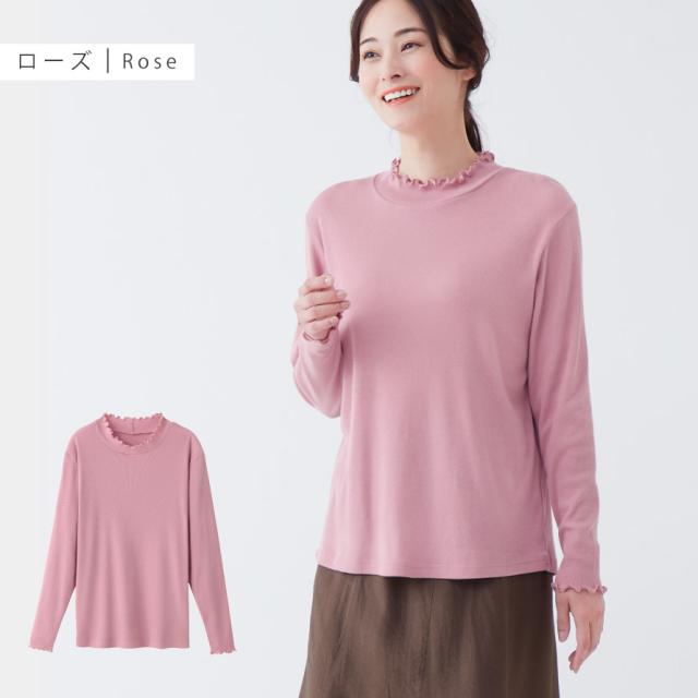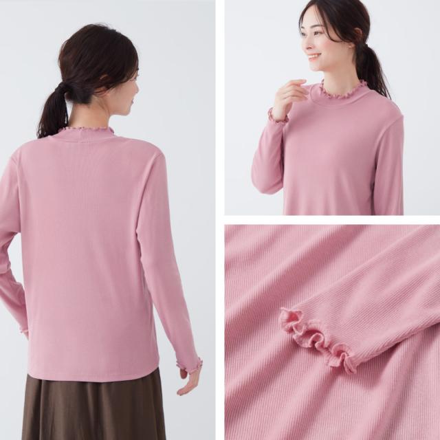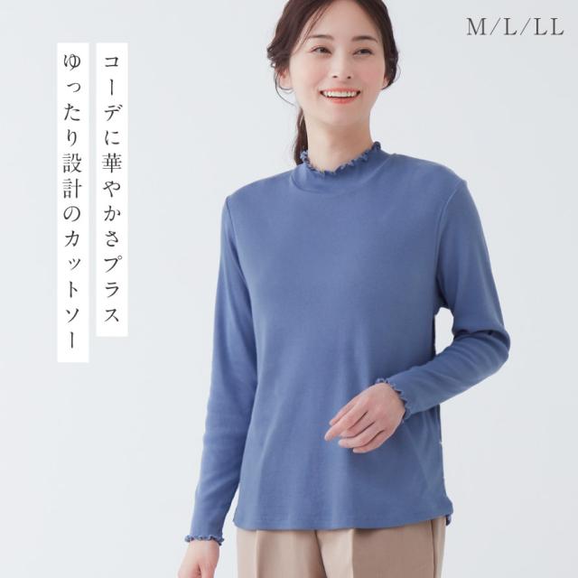 カットソー,トップス,インナー,長袖,リブ編み,リブ,メロー,シワになりにくい,ピンク,ローズ,ブルーグレー,ブルー,青,グレー,サンドベージュ,ベージュ,おしゃれ,お洒落,オシャレ,かわいい,可愛い,フェミニン,上品,きれいめ,エレガント,高見え,スタイリッシュ,シンプル,カジュアル,大人,レディース,女性,シニア,高齢者,お年寄り,ミセス,ミセスファッション,30代,40代,50代,60代,70代,M,L,LL,大きいサイズ,ゆったり,大きめ,体型カバー,細見え,着痩せ,すっきり,お腹,二の腕,カバー,