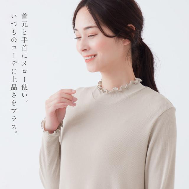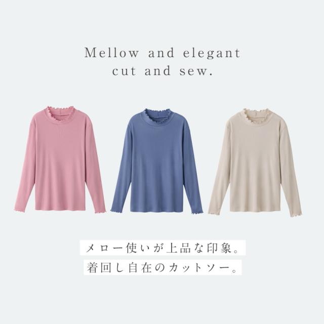 カットソー トップス インナー 長袖 レディース メロー シンプル M L LL メロー使いの長袖リブカットソー 大人 きれいめ シニアファッション 60代 70代 80代 ミセスファッション メール便対応