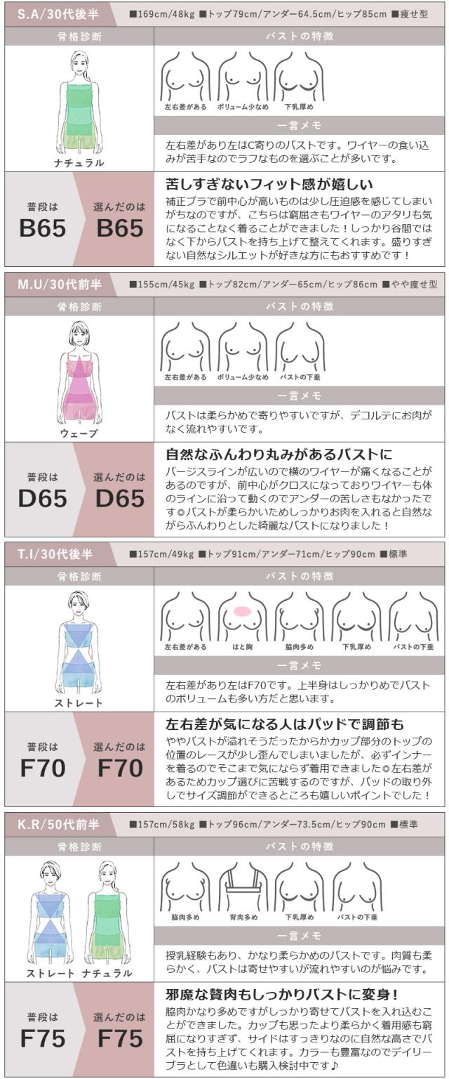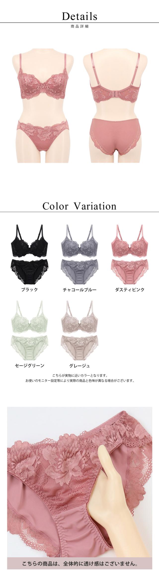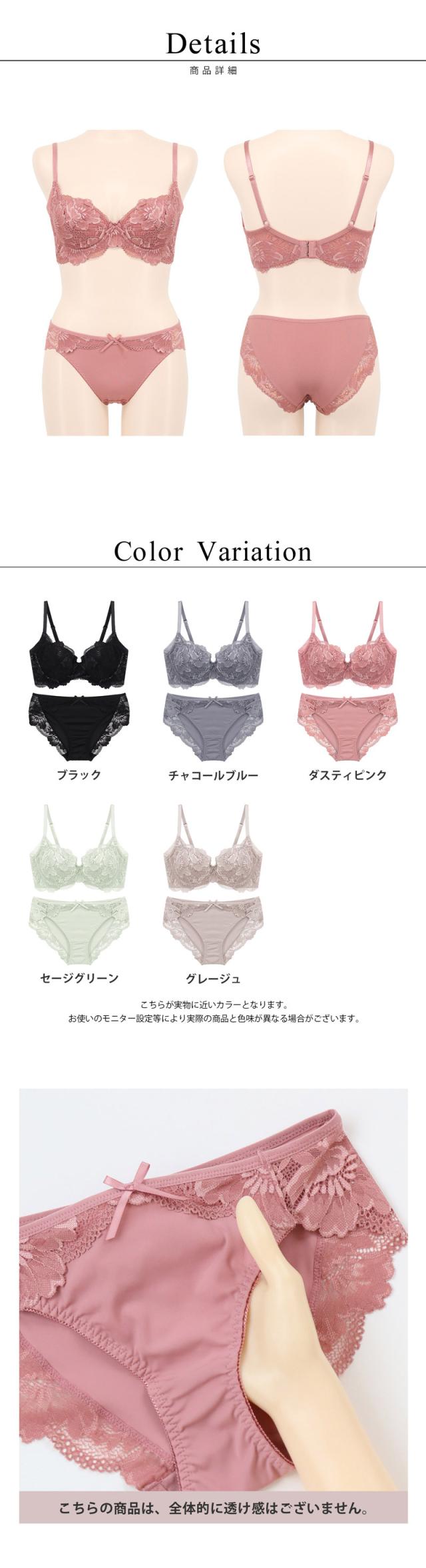 - ブラックを購入しました。しっかりお肉を集めてくれ、綺麗に着れます。少しだけ胸が潰れているような気もするので、ワンサイズ大きくてもよかったかな、とは思います。レースタイプのショーツのデザインが好みでした...