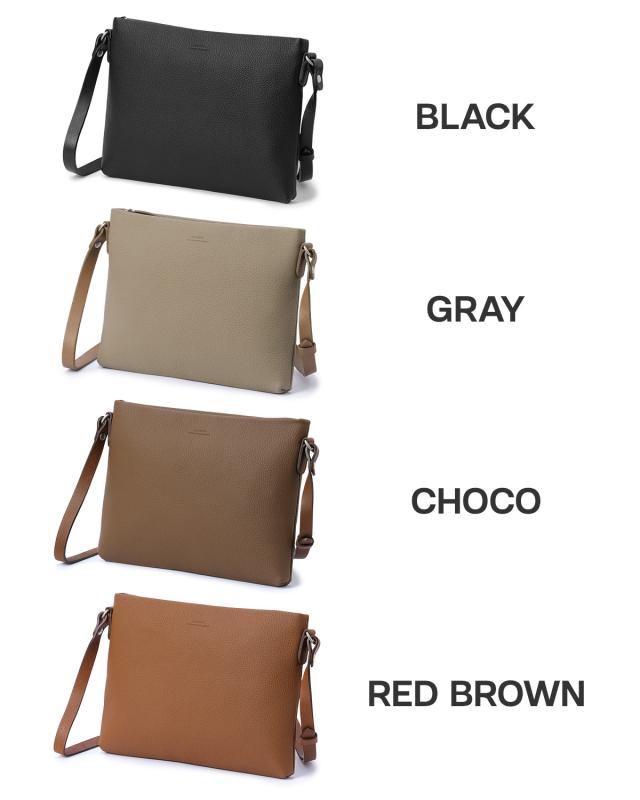 | - shrink sacoche - BLACK、 GRAY、 CHOCO、 RED BROWNの4色展開で、どんな装いにもマッチするアイテム。本体サイズは幅260mm×高さ190mm×奥行20mmのコンパクトながらも十分な収納力を持ち、日々のちょっとしたお出かけに理想的なサイズ感を実現しています。 品質へのこだわりが感じられる牛革で作られた本体と、内装には品質を保証するポリエステル100%を使用しており、美しさと実用性を兼ね備えています。すっきりとした印象で、使い勝手の良さと洗練されたスタイルを両立させています。 国内で丁寧に製造されたこのショルダーバッグは、日常から特別な日まで、常にあなたのスタイルを格上げするアイテムとなるでしょう。スロウならではの品質とデザインを、ぜひ手に取って体感してください。 - material - 国内の老舗タンナーより1枚1枚丁寧に仕上げた本体のレザーは、地下100メートルからくみ上げた水を鞣しの工程に使用している為、品質を安定させ、きめが細やかで独特な風合いをご堪能頂けます。更に仕上げ工程に24時間ドラムでから打ちする事で、もっちりと滑らかな風合いに仕上げました。 |