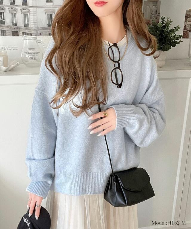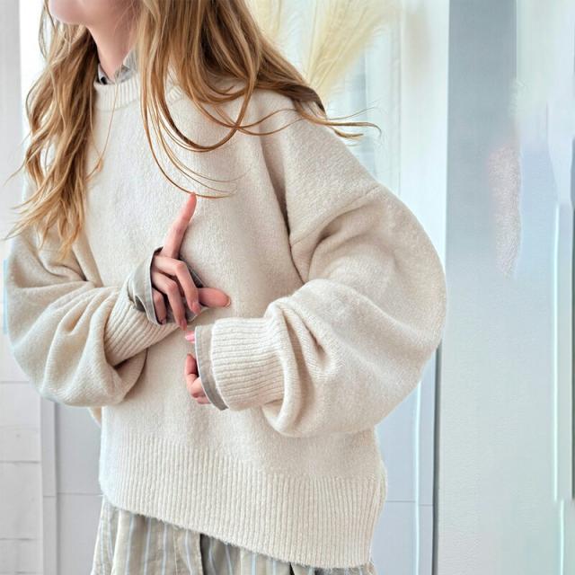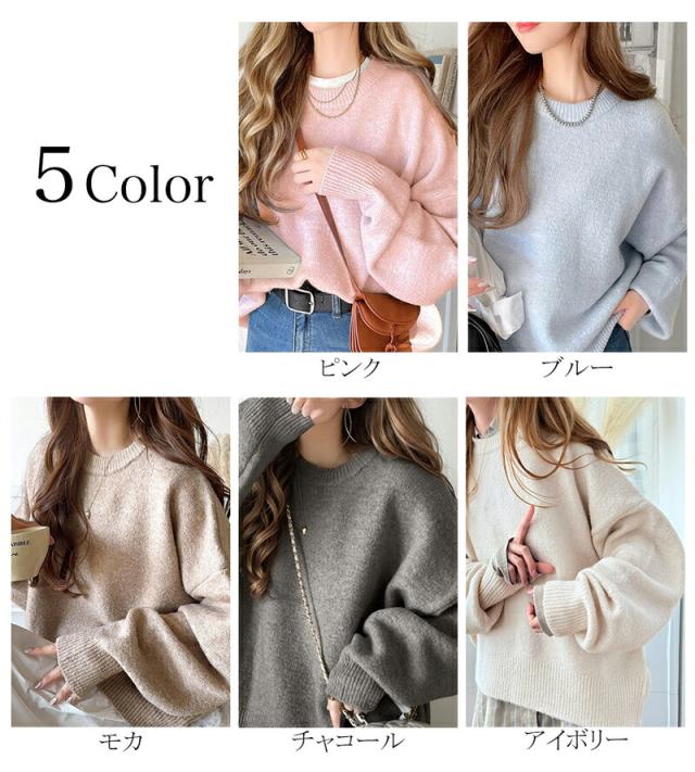 クラシカルエルフ冬新作 トップス ニット レディース ふわもち コクーン シルエット クルーネック ミックスニット ゆるっと オーバーサイズ クロップド丈 デイリー 着回し 大きいサイズ 2024aw ce1020152