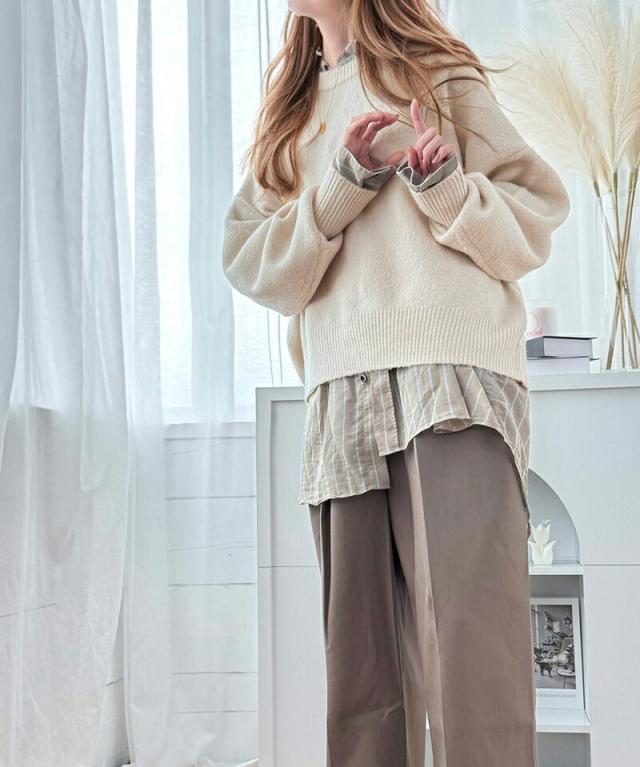 ★ゆったりふわもちの癒しアイテム。コクーンシルエットミックスニット★