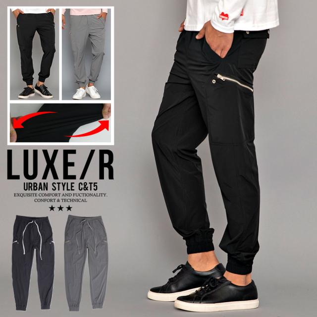 カーゴパンツ メンズ ジョガーパンツ ジャージパンツ ストレッチ おしゃれ ナイロンパンツ 細身 スリム ブラック グレー 黒 M L LUXE R ラグジュ ブランド カジュアル ストリート スポーツ ユニセックス 大人 秋 冬 秋冬 20代 30代 40代 男性 男 ファッション [45847]