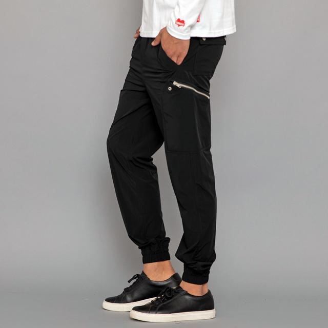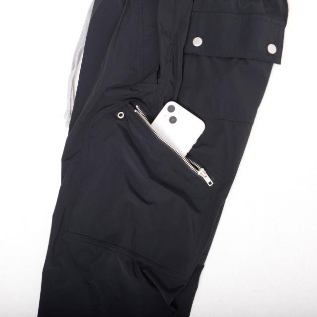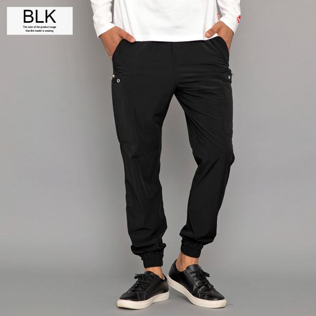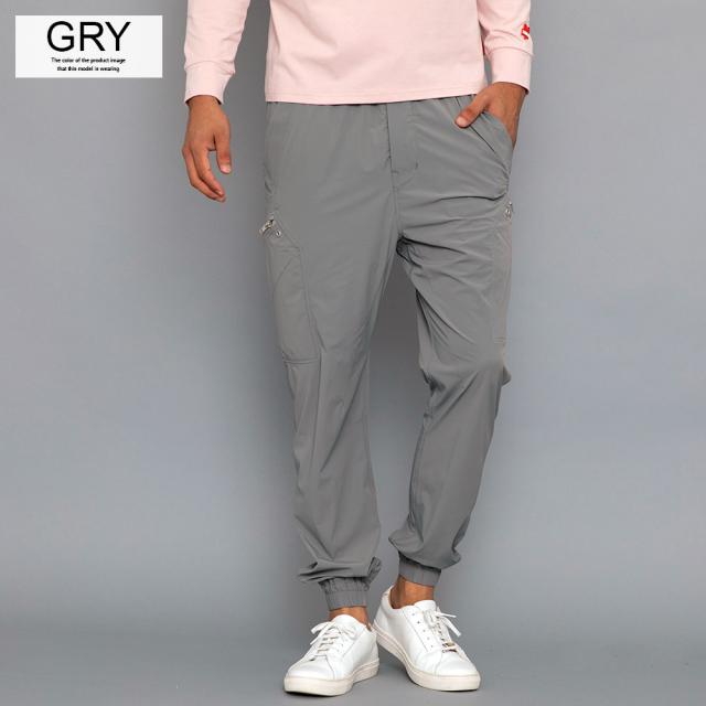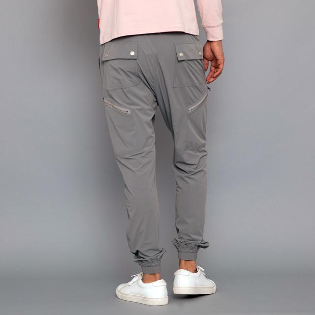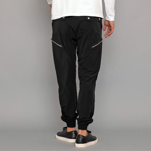 ギャバストレッチ素材を使用したナイロンカーゴパンツ。