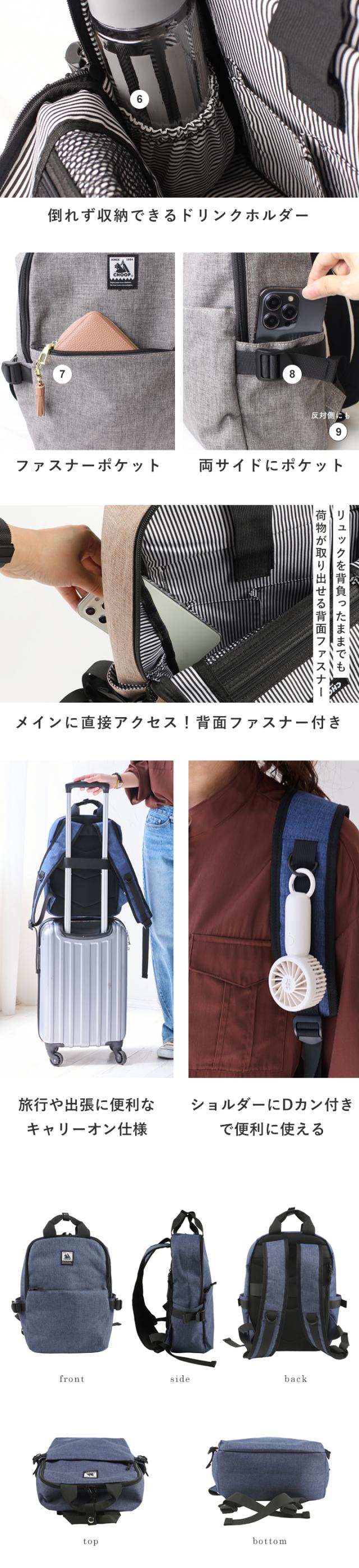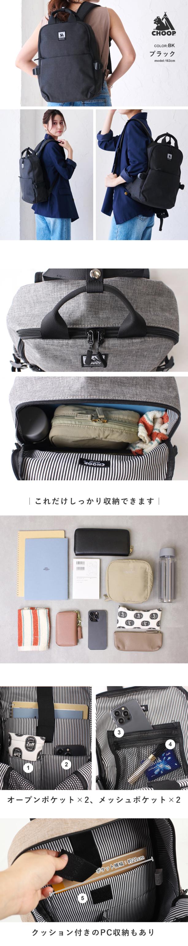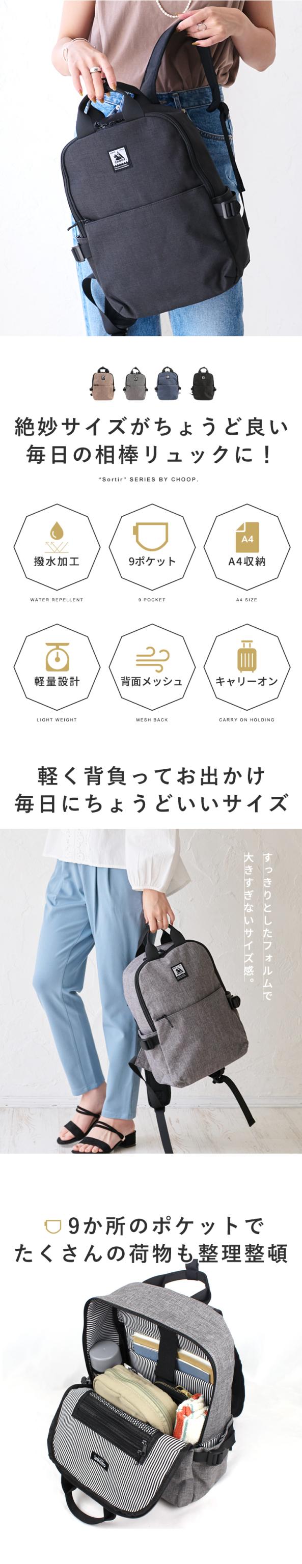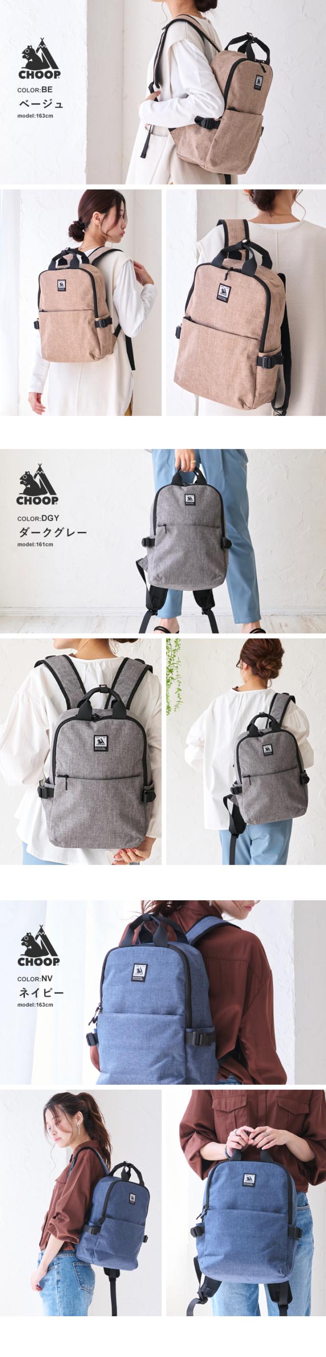 リュック バックパック CHOOP レディース メンズ 通勤 通学 マザーズバッグ リュックサック 小さめ 軽量 かるい かばん バッグ 鞄 ビジネスリュック クッションポケット タブレット収納 出張 旅行 シンプル 多収納 多機能 シュープ choop【cso-62706】