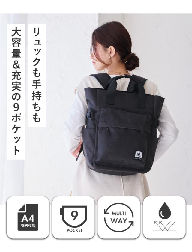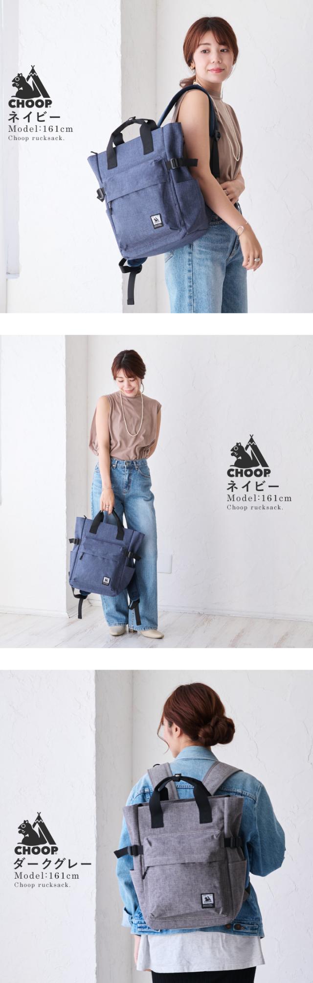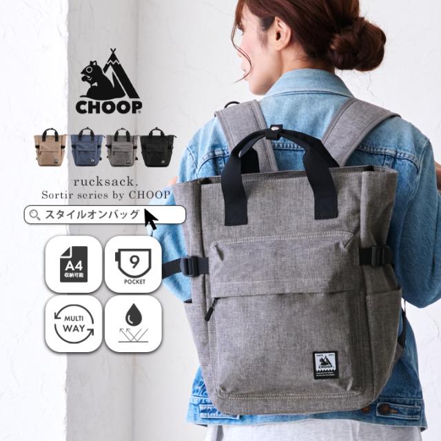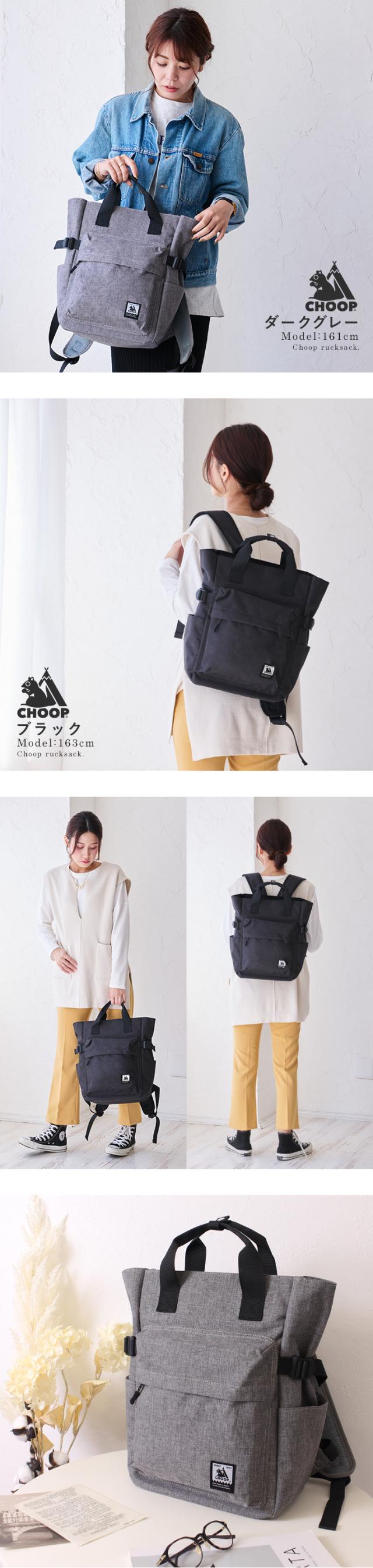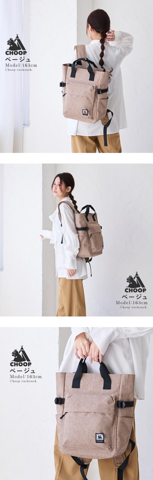 リュックも手持ちも! 充実したポケット数と機能性 CHOOP「Sortir」シリーズ 持ち手付きなので、電車やバスで手持ちしたり 気分やシーンに合わせて持ち方を選べます◎ 四角形に開く開口部は荷物を入れやすく 荷物の量に対してリュックの容量を調節できるサイドベルト付き。 通勤・通学・旅行など幅広いシーンで大活躍! ママバッグとしても◎ 合計9個のポケットで小物類もしっかり収納できます。 背負ったままメイン収納にアクセスできる背面ファスナーも! 撥水加工を施した杢調のポリキャンバス生地で 雨の日も気軽に使えて、お手入れラクラク! 背面とショルダーにクッション性と通気性があるメッシュ素材を 使用していて長時間、背負っていても蒸れずに快適。 |