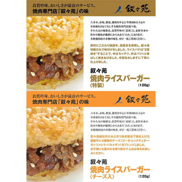 [冷凍] 叙々苑 焼肉ライスバーガー <特製 5個> <チーズ入 5個> セット