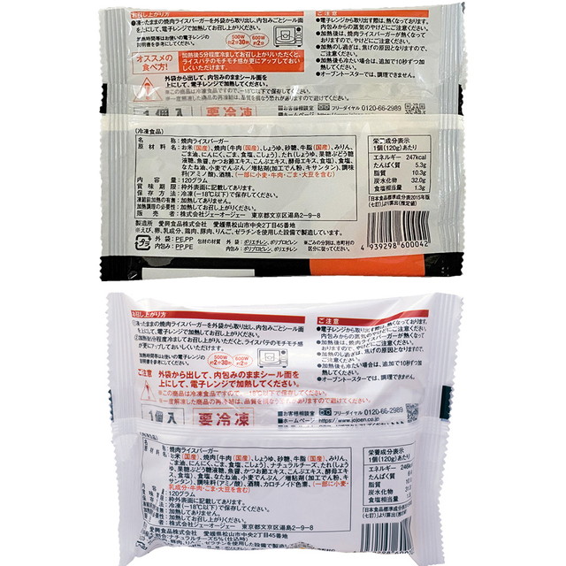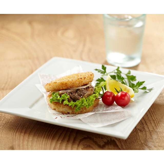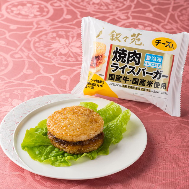 国産牛国産米を使用。特製は素材や味にこだわった贅沢なライスバーガーが出来上がりました。他では絶対に味わえない逸品です。厳選した国産牛は叙々苑秘伝のたれで焼き上げ旨味をとじこめました。ライスはしょうゆと魚醤で旨みを加え、さらに2度焼することで、表面はパリッと香ばしく、中はもっちりとした食感に仕上げました。チーズ入りはライスバーガーの特製に4種類のチーズ(ゴーダレッドチェダーモッツァレラパルメザン)をブレンド。叙々苑秘伝のたれの甘味と、まろやかな酸味で引き立つ肉の旨みに絶妙なバランスで絡み合う香り豊かなチーズとのマリアージュをお楽しみいただける逸品です。朝食や軽食などに、電子レンジでお手軽に叙々苑の味がお楽しみいただけます。