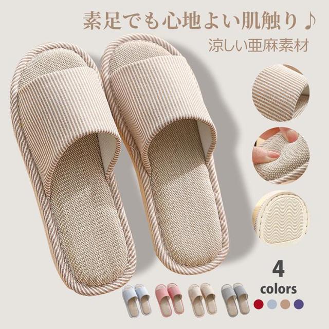 スリッパ おしゃれ 綿 麻 室内履き ルームシューズ サンダル 滑り止め 柔らかい PVCソール 洗える 来客用 男女兼用 快適 夏用 抗菌 防臭 軽量
