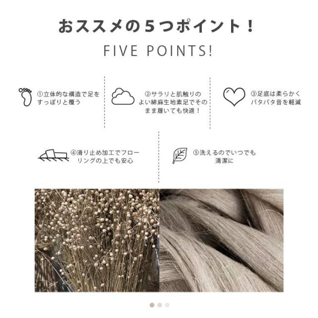 (2)サラリと肌触りのよい綿麻生地、素足でそのまま履いても快適!