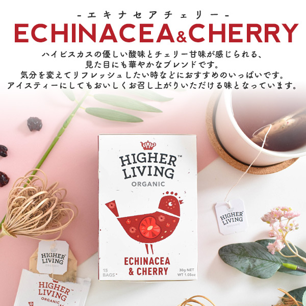 有機ハーブティー 【エキナセアチェリー】 ノンカフェイン HIGHER LIVING ハイアーリビング ティーパック 15袋 オーガニック プチギフト ハーブ 飲物 プチプレ おいしい 飲みやすい 人気 tea カフェインレス カフェインフリー 女性 プレゼント ギフト 妊婦 マタニティ 妊活