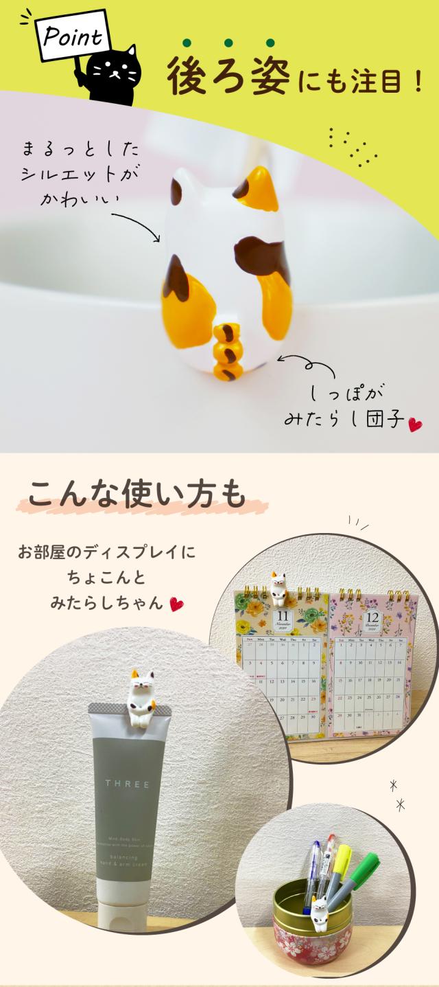 お茶屋の看板ネコ「みたらしちゃん」のコップのフチに飾るかわいいフィギュア付きプチギフト♪